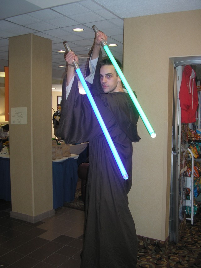 Then there was a regular who is always dressed up in one thing or another. This time he was costumed as a Jedi Knight. His name is Dion Hicks. His light sabers were made overseas and were spectacular. Especially with the fact that it changed colors and had with the sound to go with it!