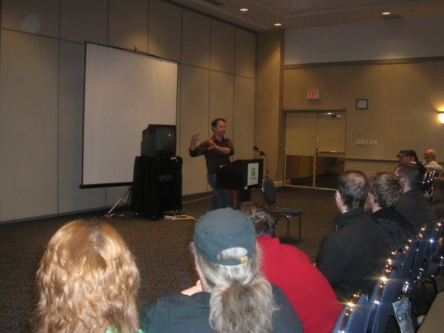 So I headed back to the Roddenberry Room and get ready for Mike Savva’s Q&A and I am looking everywhere for my digital video camera. It was missing. Oh just great! Well I never had time to go out to the truck and check if I had left it there because when I turned around, here was Janet (another committee member) introducing him.